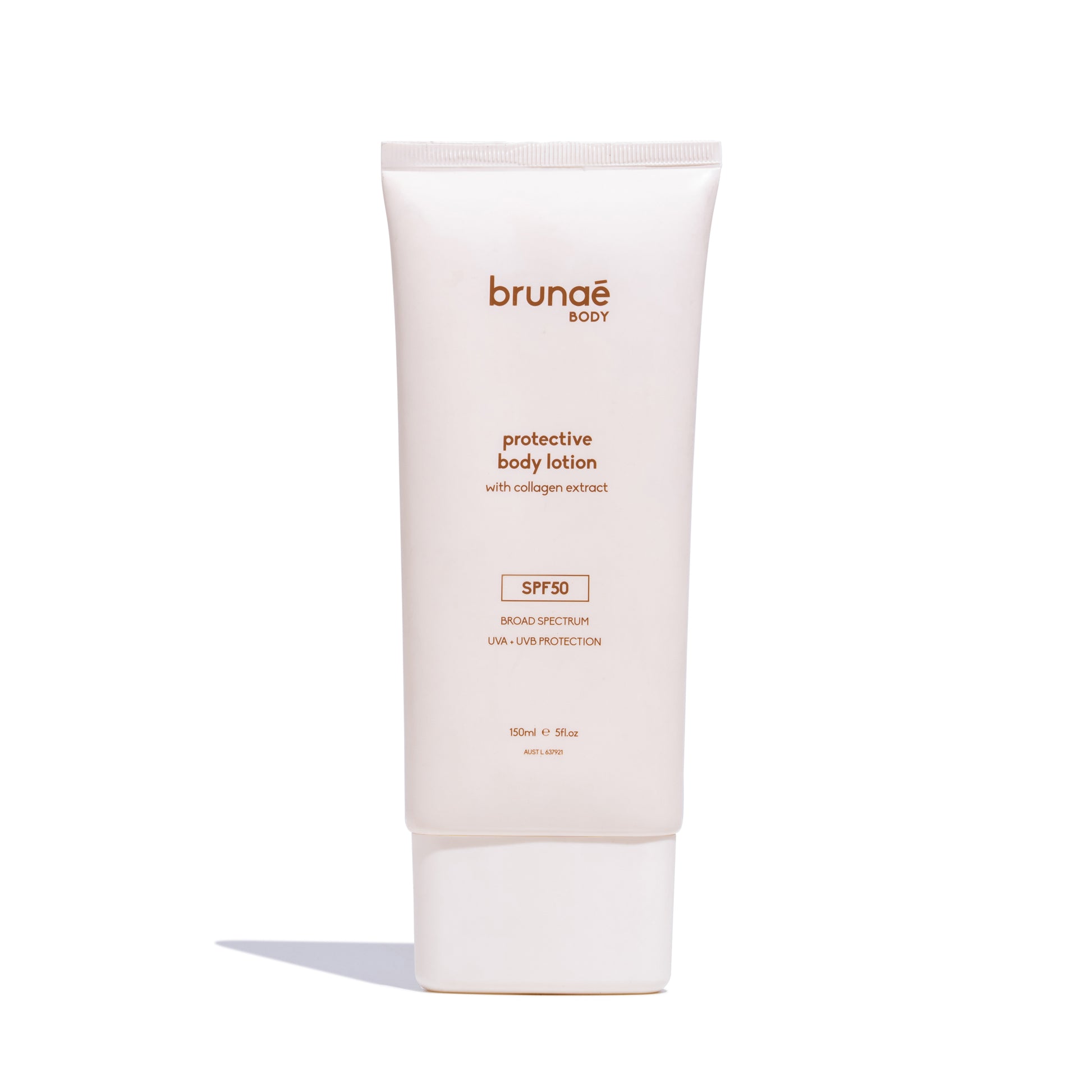 A body lotion with SPF50+ sunscreen and broad spectrum UVA/UVB protection. Ideal for everyday use. Enriched with Vitamin E and Collagen. Made in Australia.
